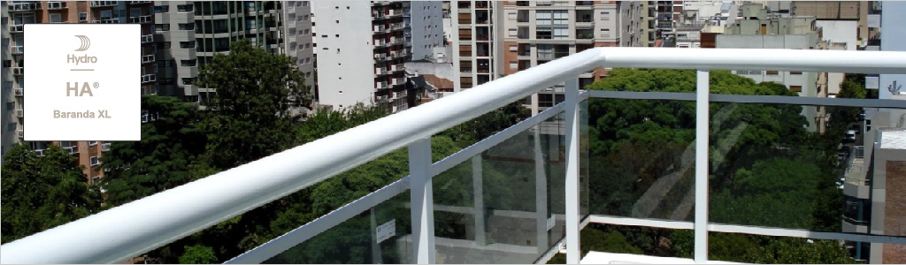 • Visión exterior “Vidrio total”, sin parantes visibles desde el exterior, con la parte superior del vidrio oculta en el pasamano.